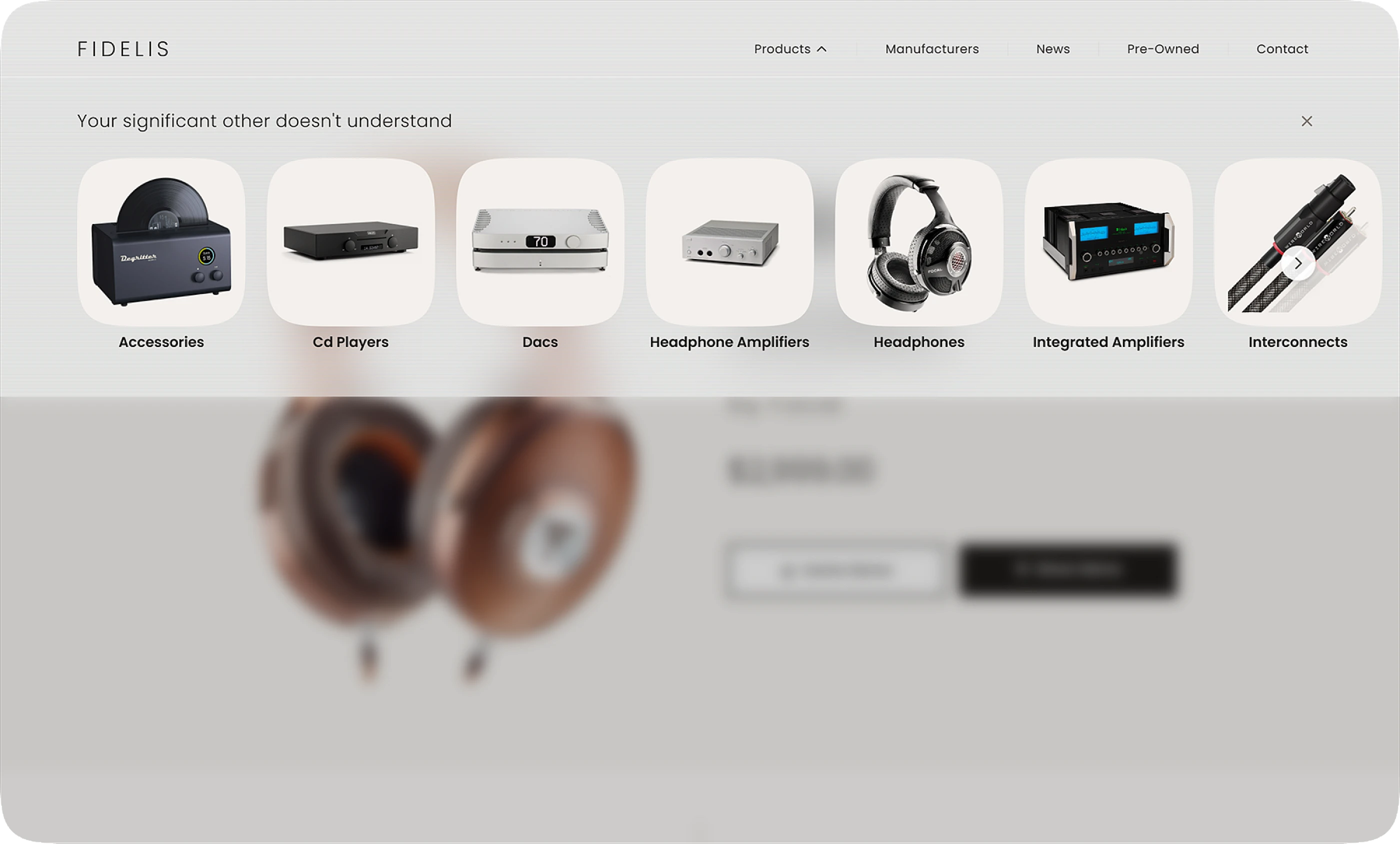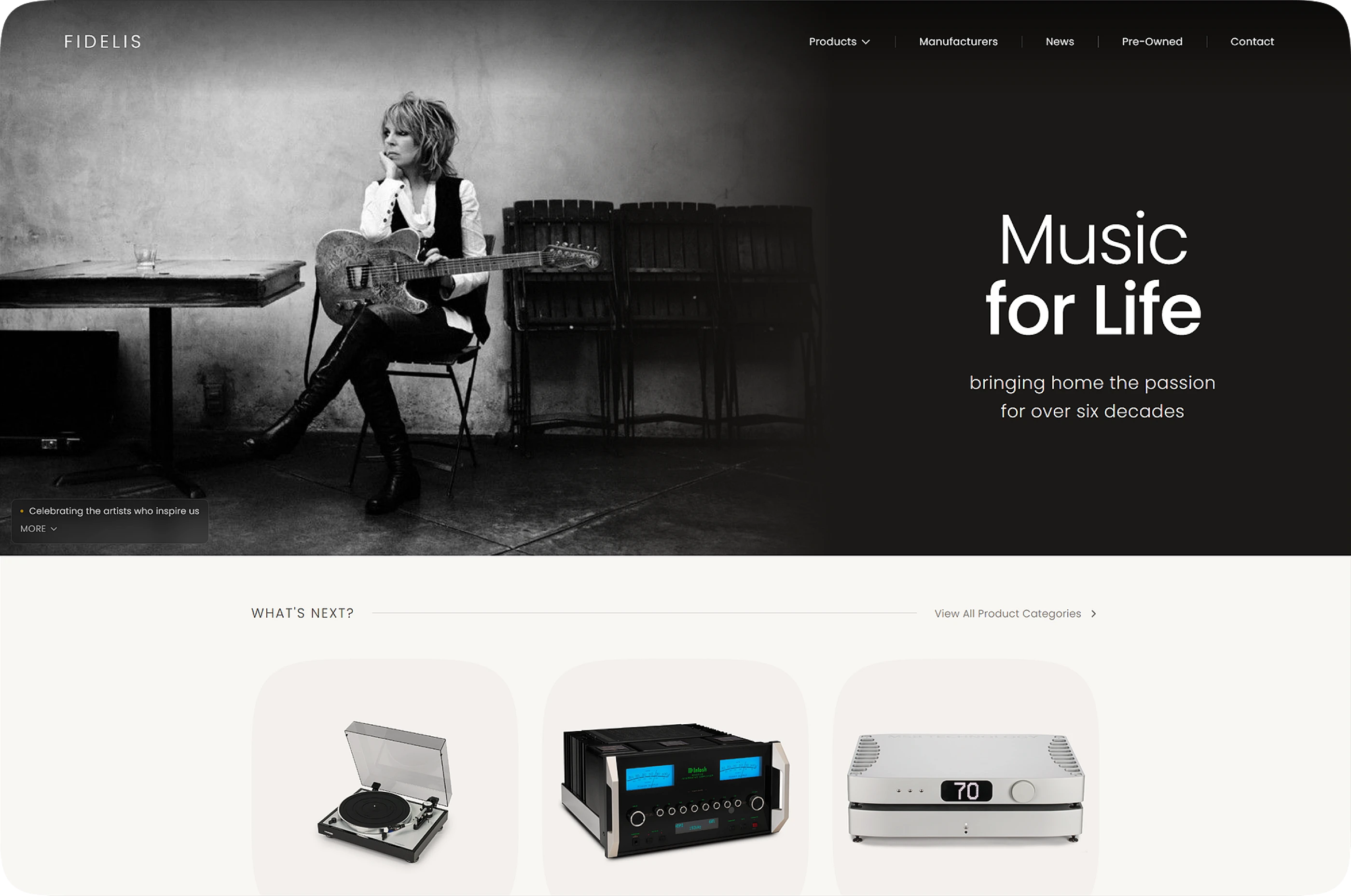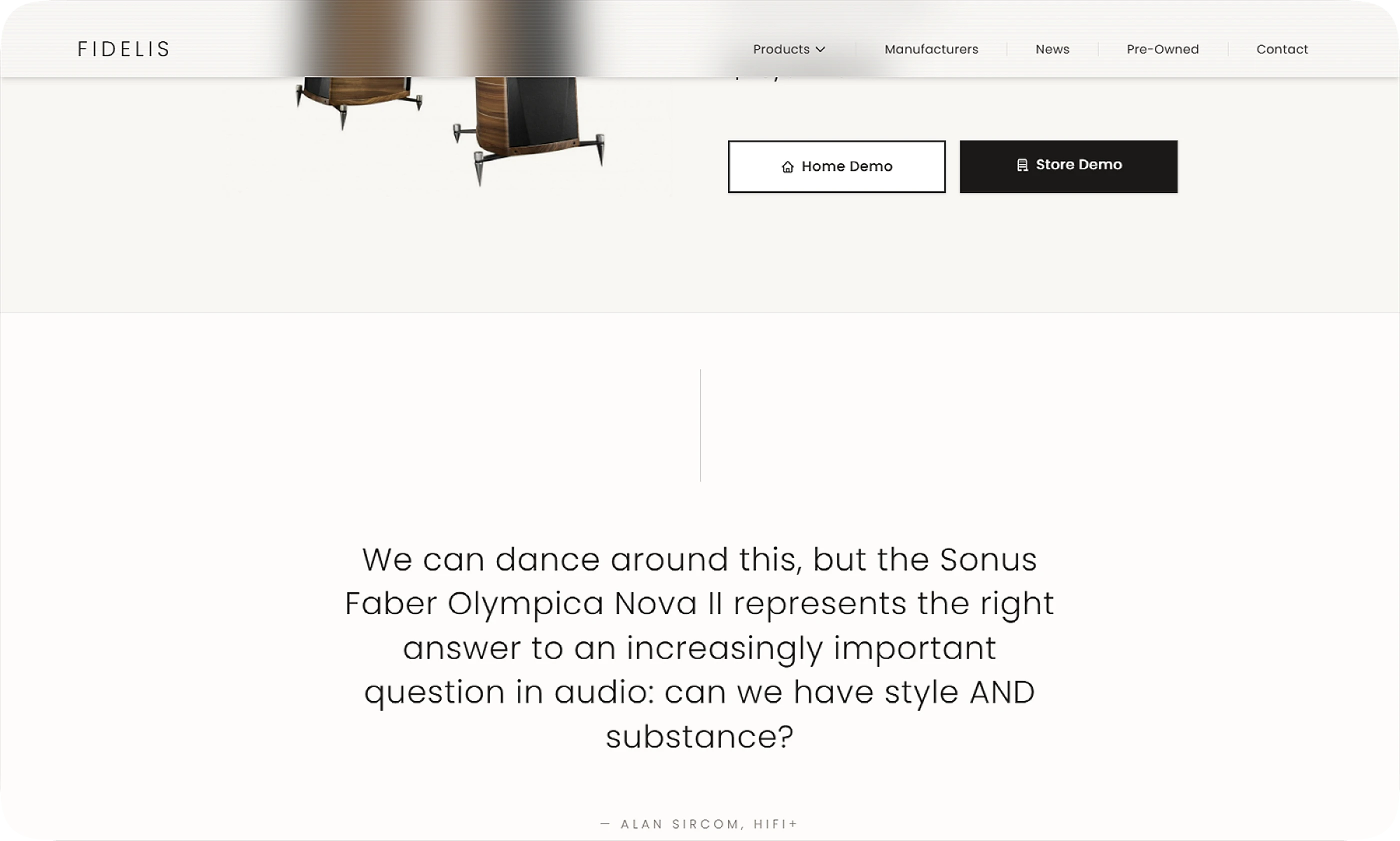 Fidelis is America's #1 importer and distributor of high-end audio equipment. Using Claude-4-Sonnet AI in Cursor, I 'vibe-coded' a redesign and rebuild of their customer-facing site, reconceived as a responsive React app. Custom in-app CMS, enhanced sort and filter functionality, improved UX/UI, use of animation, and 100/100 SEO scores.
