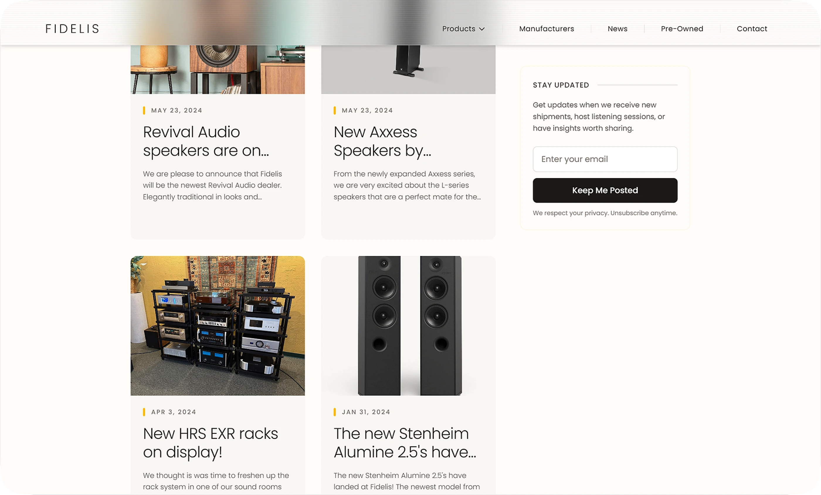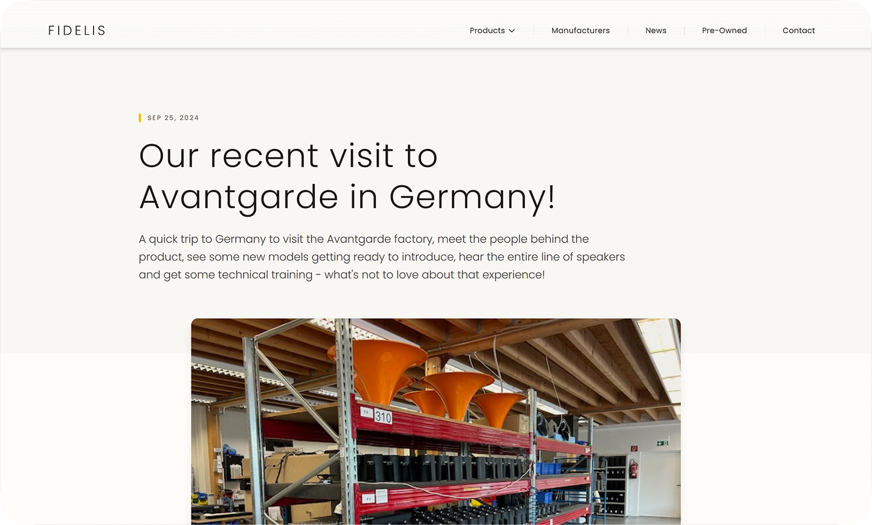 The site blends retail, pre-owned, and blog experiences, allowing Fidelis to curate a vibrant local community.